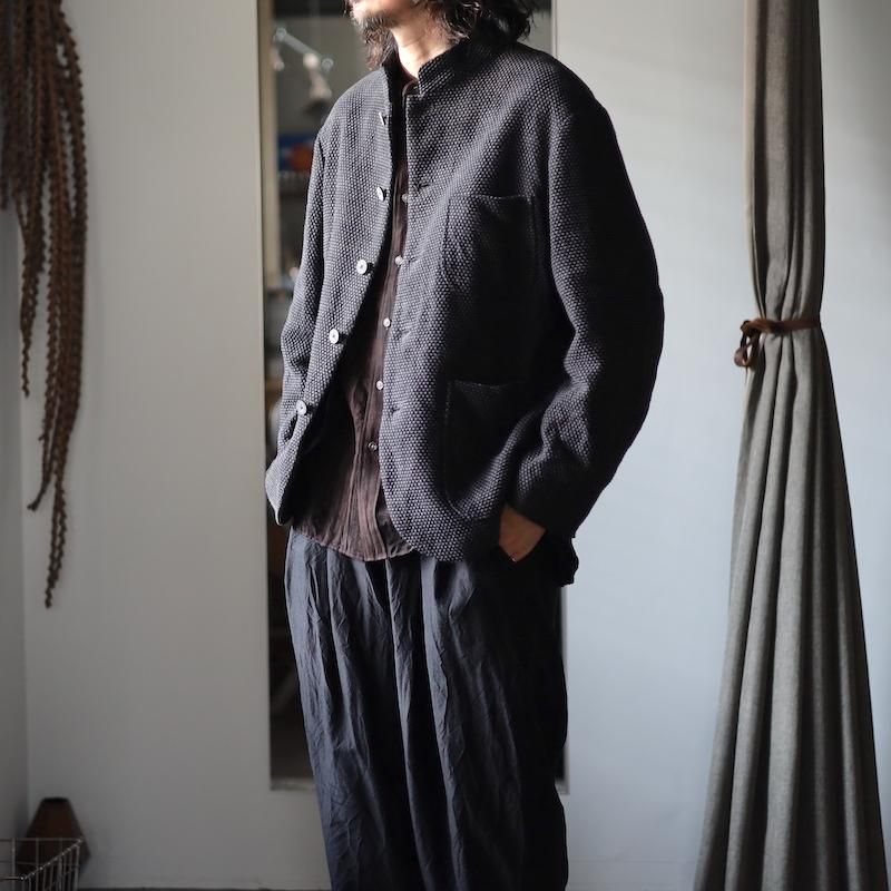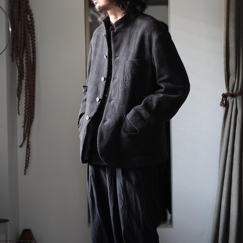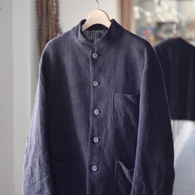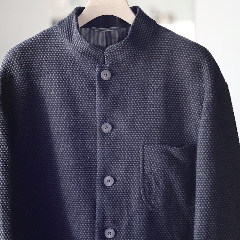 【calmlence】COTTON SASHIKO CLOTH STAND COLLAR JACKET