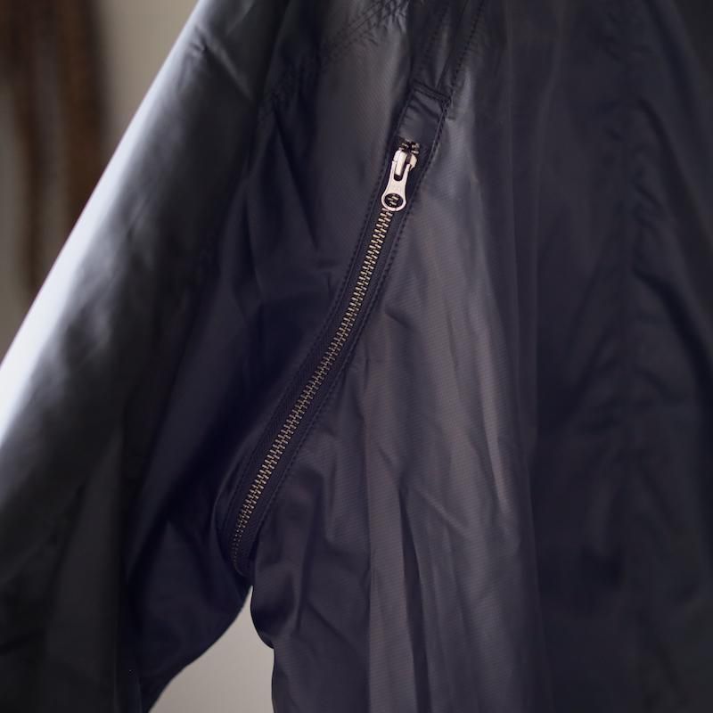 M-65フィッシュテールパーカーのライナーのアームホール底にある通気性のための開きから着想したブルゾンです。アームホール底の開きをジップの開閉に置き換え、装飾的かつ機能的な細部にしました。また2024AW(09)のtype66のシャツの派生のアイディアとして、表地と裏地の間のデットスペースを大きなポケット袋として捉えることを試しています。