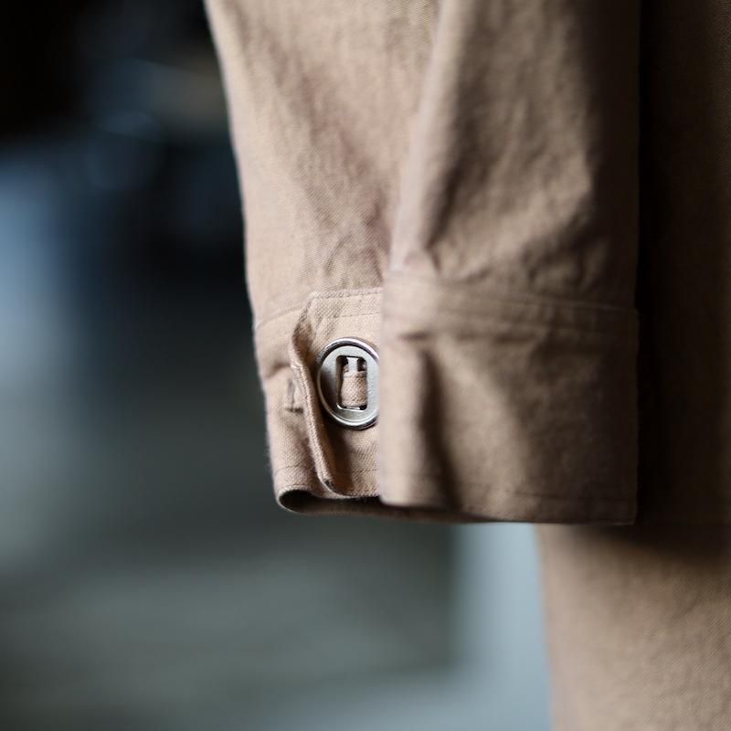 今回、三宅さんの製作着として日常的に袖を捲る彼のスタイルをリアルに表現しています。長めに設定された袖は絞る or 捲るというスタンスをファッションのアクセントとしてお楽しみください。