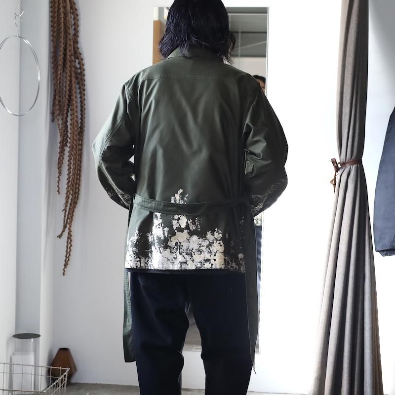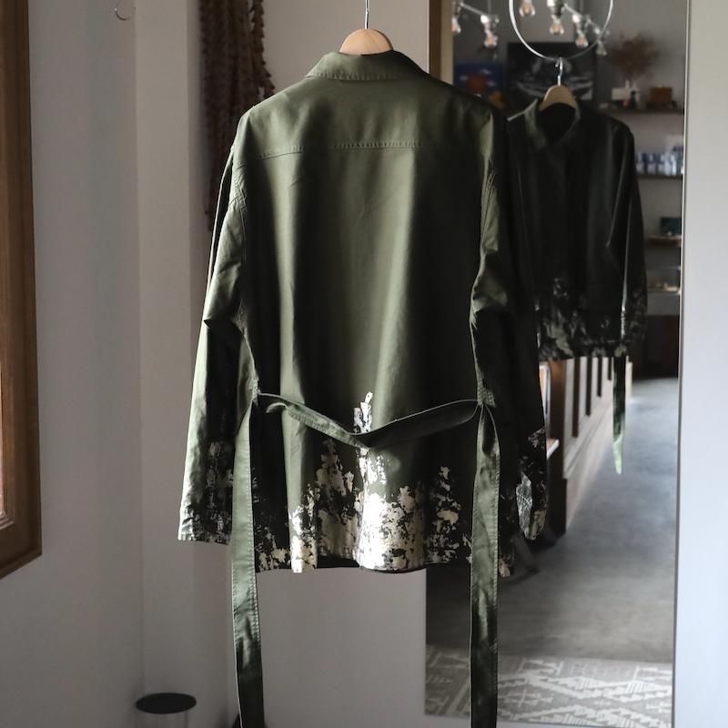 【awasa】giza cotton moleskin belted jacket / metallic gold paint
